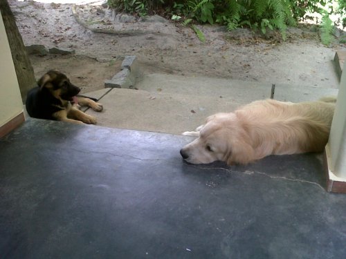 Estas reflexões profundas chegaram por conta do exercício diário que estou fazendo para ensinar Bella, uma cadela da raça Pastor Alemão, nova paixão em casa, a viver civilizadamente e se tornar guardiã… Bella tem menos de 3 meses e mostrou coragem ao enfrentar o Xico que, apesar de enorme, é o mais delicioso e amoroso Golden Retriever do planeta…