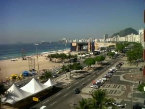 Estava com saudades de caminhar na areia fofa da praia de Copacabana.  Não sei por que achei que o mar estaria poluído, mas a água estava transparente. Olhei o horizonte e vi navios ancorados. Em Vila de Santo André quando olho para o mar o horizonte é pleno. Às vezes um barquinho de pesca, uma chalana ou escuna, mas nada estático… Com o sol nascendo fui caminhando até o Leme procurando encontrar algum amigo entre as pessoas que passavam. Passou por mim “quase” que um Renato, “quase” que uma Celina e “quase” tantos outros queridos que não encontro há muitos anos… Era usual encontrá-los nestas caminhadas nos anos que morei em Copacabana… Passei por um grupo que ao longe, com meu olhar anos 70, pensei que eram hippies, mas de perto vi mendigos. Sentei para meditar, respirei fundo para sentir a delicia do cheiro do mar e o arrulhar dos pombos tirou a minha atenção. Lembrei então de quantos pombos ciscam na areia.  Voltei à meditação, e quando estava num momento íntimo de agradecimento e adoração ao dia passou o vendedor oferecendo mate e biscoito Globo. Estou realmente em Copacabana !!!