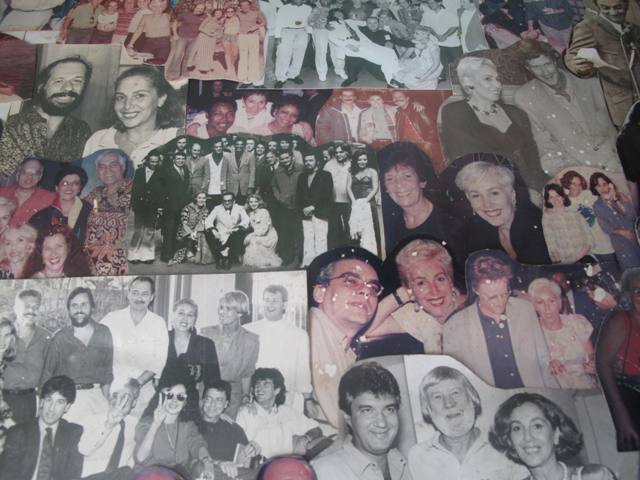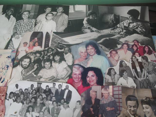 Com Ray Connif, na outra ponta Erick, inesquecivel maquiador e transformista, como Carmem Miranda; de pulover laranja Tania Ferraz, mais embaixo com Vanusa, Tereza Sodré e Carlos Alberto, embaixo a esquerda com Fagner e Miguel Plopshi, e no canto a direita, foto do casamento com Regis Cardoso e Bernardo.