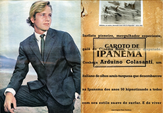 Passei a tarde viajando nas lembranças destes tempos… Olhos repletos de imagens, sabores de Ipanema nos anos 70 vejo na TV o Arduíno dos últimos tempos… Algumas entrevistas falando sobre o surfe (foi o introdutor no país), outras revendo a vida e é incontestável como o tempo é cruel… Cruel para qualquer um… Não salvou nem mesmo o lindo e desejado Arduíno que manteve os serenos olhos azuis … Não sei se ele foi feliz, mas as cenas que assisti mostram o que o tempo fez com ele e faz comigo e com todos nós… Não adianta chorar pitangas, amasso bem algumas que me restam no congelador e faço uma caipirinha… Salute Arduíno !