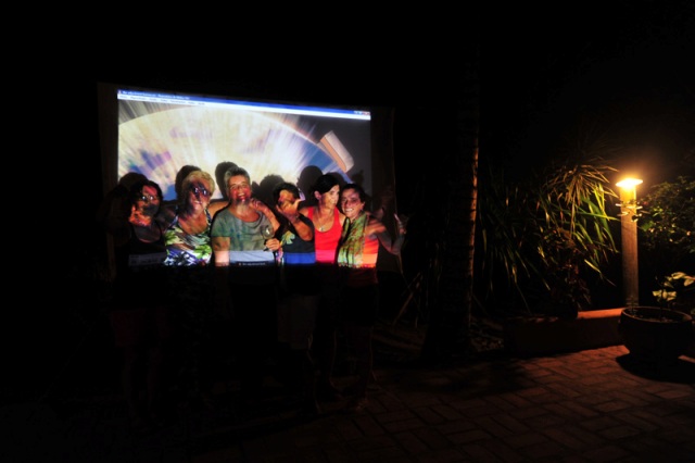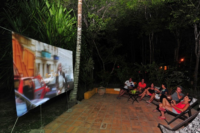 As conversas no café da manhã são deliciosas, tenho o privilégio de só receber pessoas interessantes com boas historias prá contar. Sempre aprendo e ensino alguma coisa. Ontem fizemos cinema no jardim. Esticamos uma lona branca e um lençol num varal, colocamos projetor, notebook e caixa de som na mesinha, cadeiras e espreguiçadeiras e os olhos grudados na tela grande. O perfume da noite, o pio da coruja, os cachorros dormindo no gramado e a emoção que só um bom filme provoca. Esta é a outra vida, muito divertida e um prato cheio para uma jornalista. (Fotos : Cláudia Schembri)
